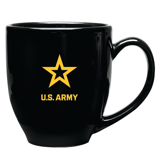 16 oz Bistro Mug Black with New U.S. Army logo gold print