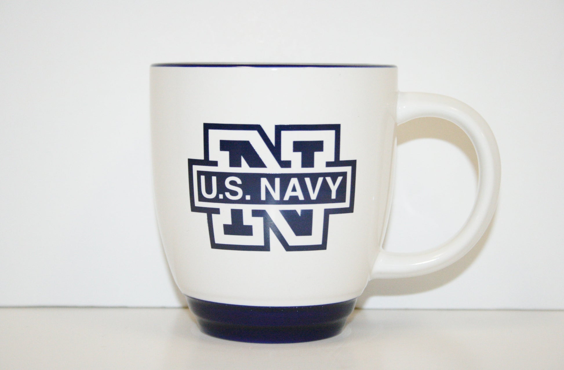16 oz Bistro Mug White with Navy Blue trim and U.S. Navy logo