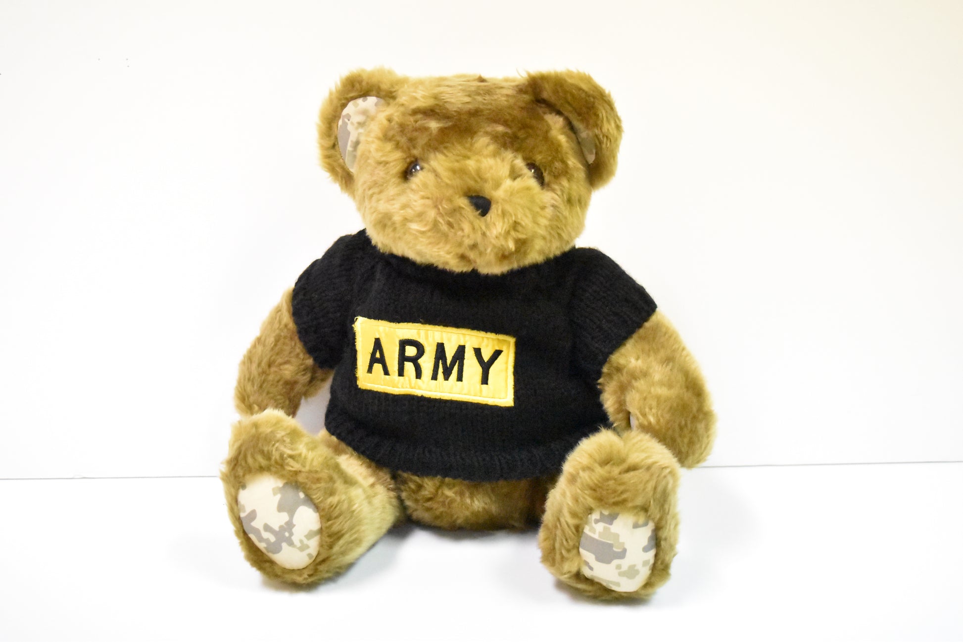 16" Plush Brown Bear with Black Army Sweater