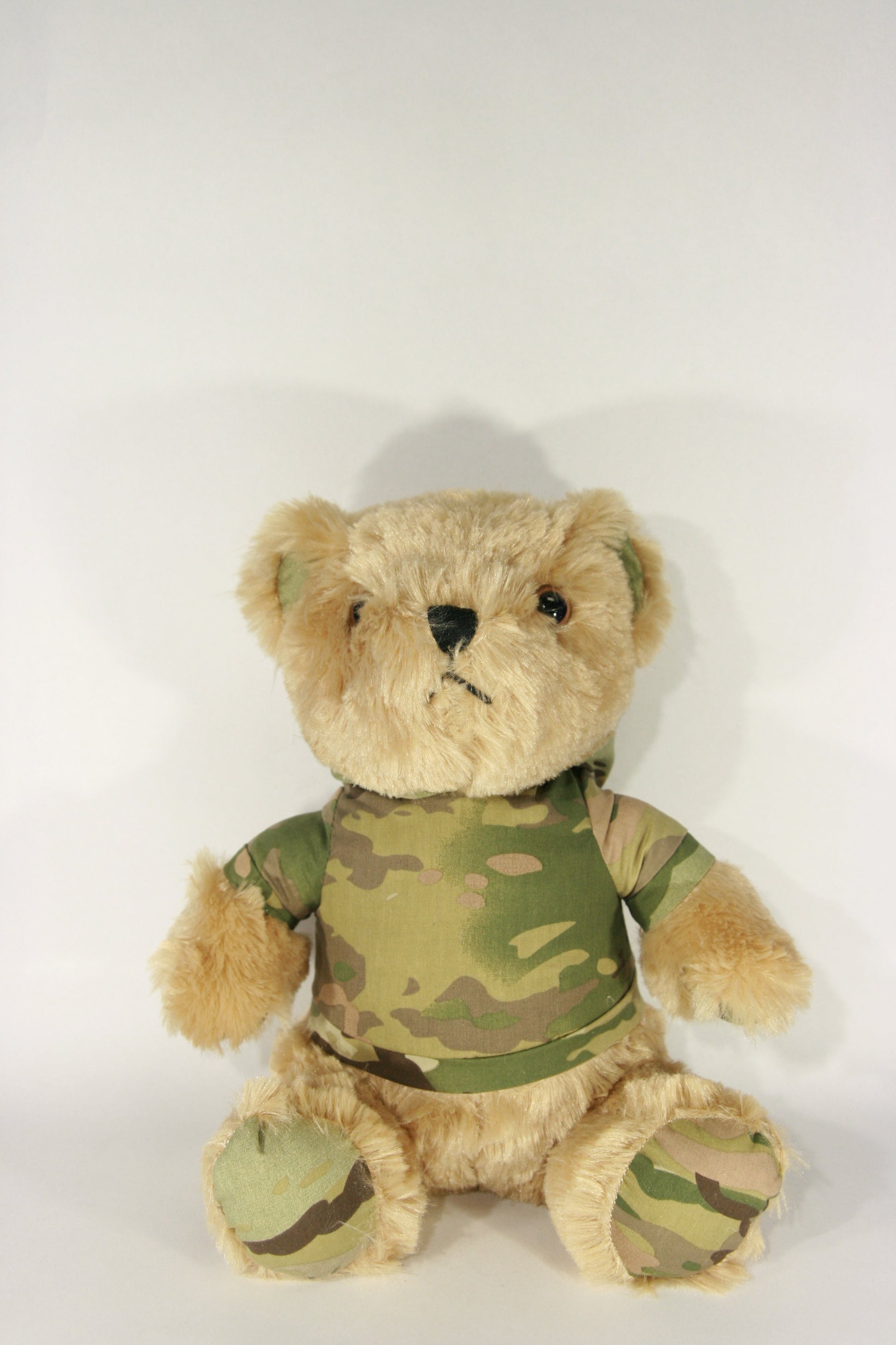 10" Plush Light Brown Bear with Multicam Military Uniform