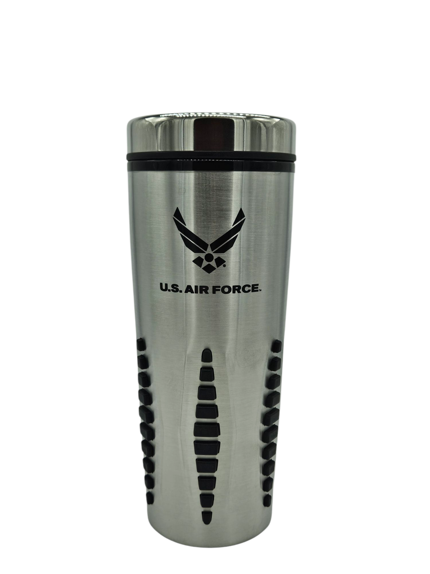 16 oz. Stainless Steel Tumbler Air Force Silver with black rubber grips
