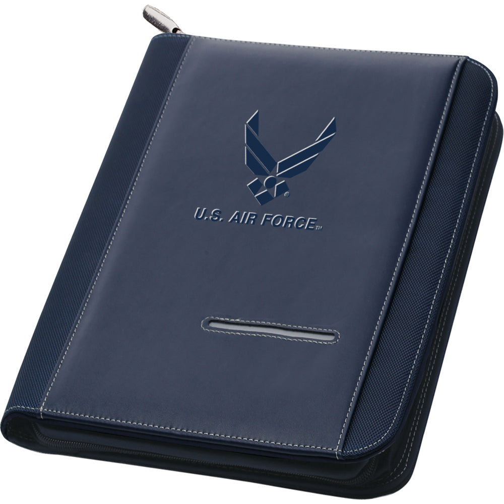 Zippered Padfolio Black with Debossed Air Force Wings Logo